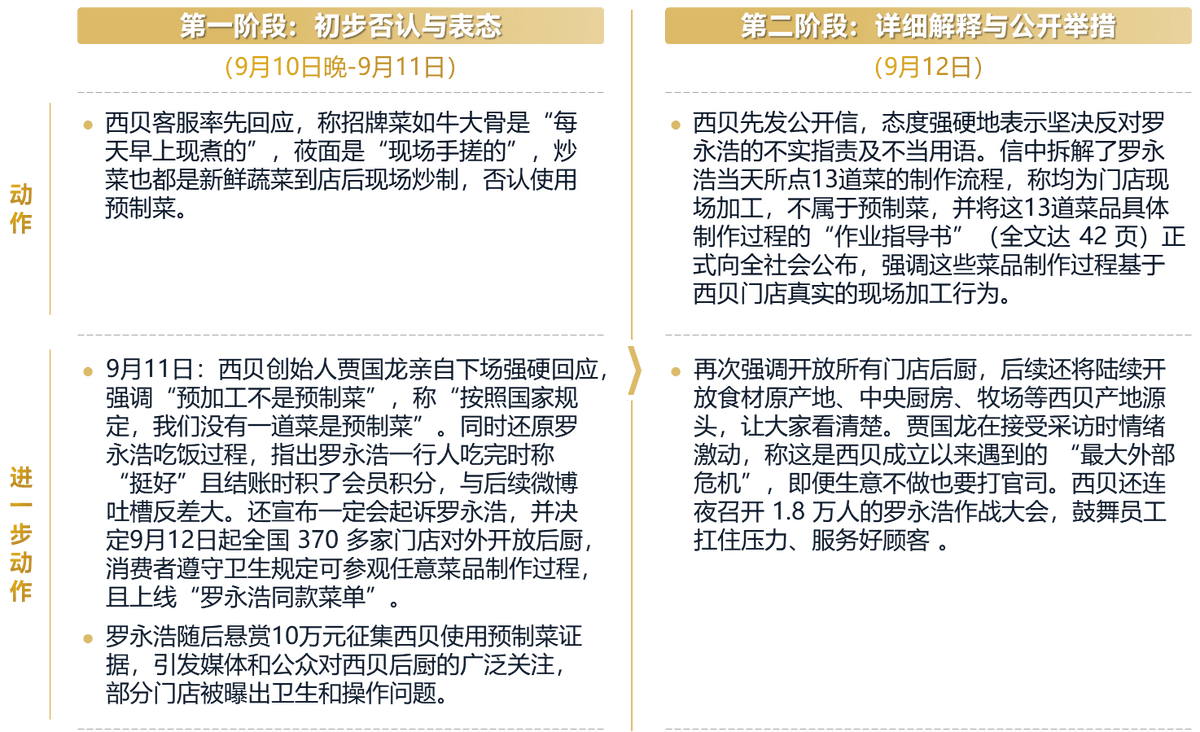 此阶段本有舆情降温的契机:9月13日晚罗永浩颁布发表“停和”,称“西贝的工作告一段落”,并正在后续曲播中呼吁网友不要网暴西贝下层员工,出“息争信号”。若西贝能抓住这一机遇,发布热诚报歉声明(聚焦“未充实奉告加工体例”“品牌认知取体验存正在误差”),而非纠结“能否属于预制菜”,大概能实现“及时止损”。
