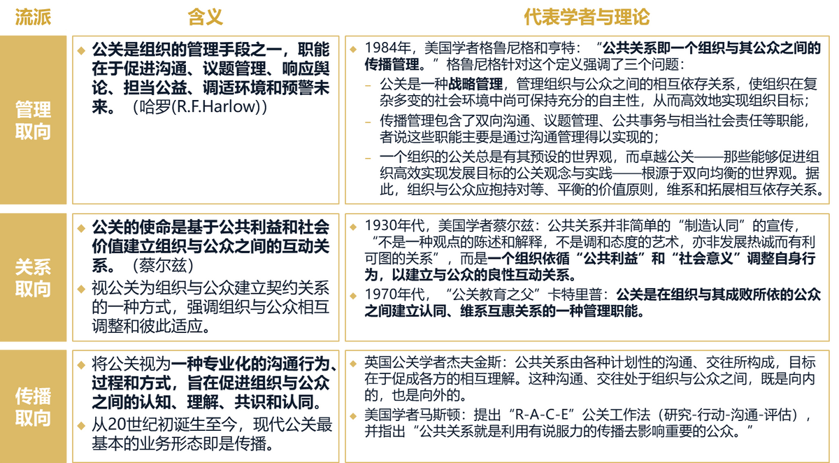 公共关系学有一套完整的理论取方式,舆情办理需要从命科学的公关道理。非论是从办理视角,仍是关系视角,或者视角,公共关系都要求饰演居间协商者脚色,做为一种功利性勾当,通过沟通办理来“制制认同”取建立配合体。舆情办理的最终方针是通过沟通办理来“制制认同”取建立配合体。