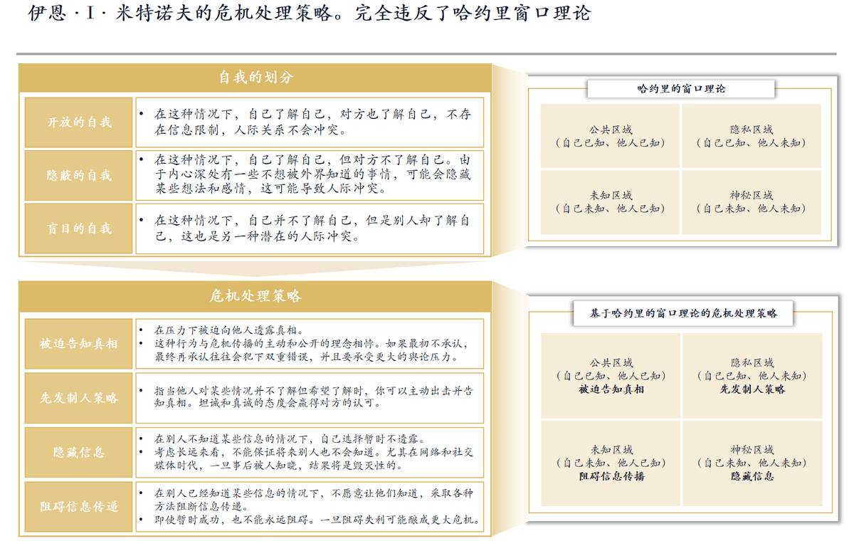 总结:西贝的焦点失误是对“现私区域”(本人已知、他人未知的预制菜消息)未采用“先发制人”的自动沟通策略,反而通过“躲藏 + 障碍”制制消息差;当消息差被打破后,又因认知错位选择匹敌,最终进入“被动奉告”的场合排场,让信赖度持续下跌。这完全了哈约里窗口理论下“以通明、自动沟通消弭消息壁垒”的危机处置逻辑。